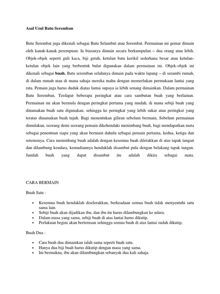 Sejarah Cara Bermain Batu Seremban / Asal Usul Batu Seremban Pdf